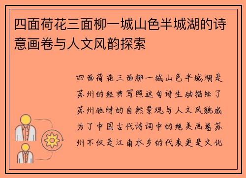 四面荷花三面柳一城山色半城湖的诗意画卷与人文风韵探索