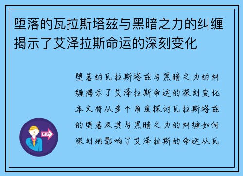 堕落的瓦拉斯塔兹与黑暗之力的纠缠揭示了艾泽拉斯命运的深刻变化